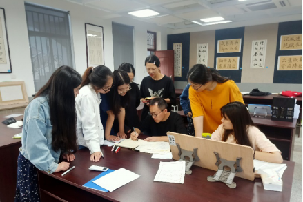 9月21日上午,乔爱军老师与我院院长曹如军在师范生技能书写教学和未来发展规划等方面进行了深入的交流,之后参观了我院书法教室并与我院师训教研室主任张曦敏老师共同研讨了书写教学工作,就师范生书写现状和对自己的教学规划做了阐述,并解答了部分学生在书写过程中的一些困难,使在场师生受益匪浅。