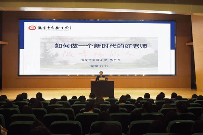 讲座伊始,陈广东指出,随着教师社会地位越来越高,教师队伍建设也越来越重要,做新时代好老师是新时代党和人民的期盼和要求。陈广东讲述了“四有”好老师的具体内容并着重指出,“四有”好老师是新时代人民教师应有的目标和标准,老师应有理想信念,有道德情操,有扎实学识和有仁爱之心。只有心灵的淡定宁静,才是幸福的真正源泉。
