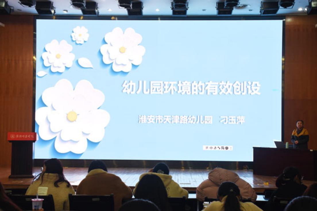教科网11月23日电 (记者 肖箫 胡梦园 陈逸行)为了提高学前师范生的专业素养,11月20日,royal皇家88平台教育科学学院邀请淮安市学前教育骨干教师、天津路幼儿园刁玉萍园长在图书馆报告厅开展题为《谈谈幼儿园环境的有效创设》的专题讲座。本次讲座由教科院学前教育系主任夏如波主持,教科院2018、2019级和2020级学前师范生参加了本次讲座。