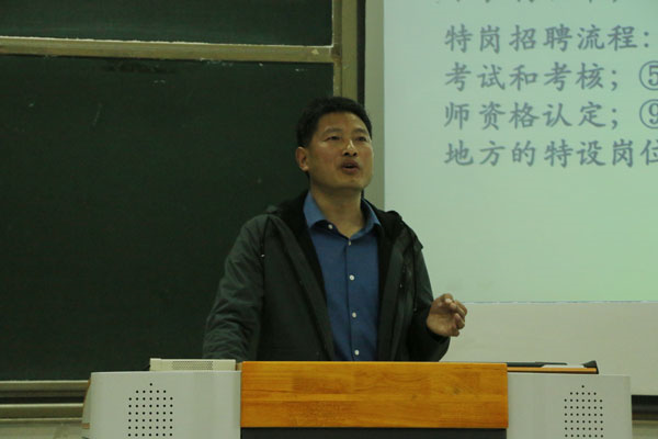 教科网4月8日电 记者 唐朱睿 王志文)4月7日下午,royal皇家88平台教育科学学院邀请清江中学课程教学处副主任、royal皇家88平台兼职副教授、师范生实践导师周法龙于崇文楼阶梯教室103开展题为“教师招聘考试的技与道”专题讲座本次讲座由教科院副院长任红娟主持,教科院教育技术学专业学生参加