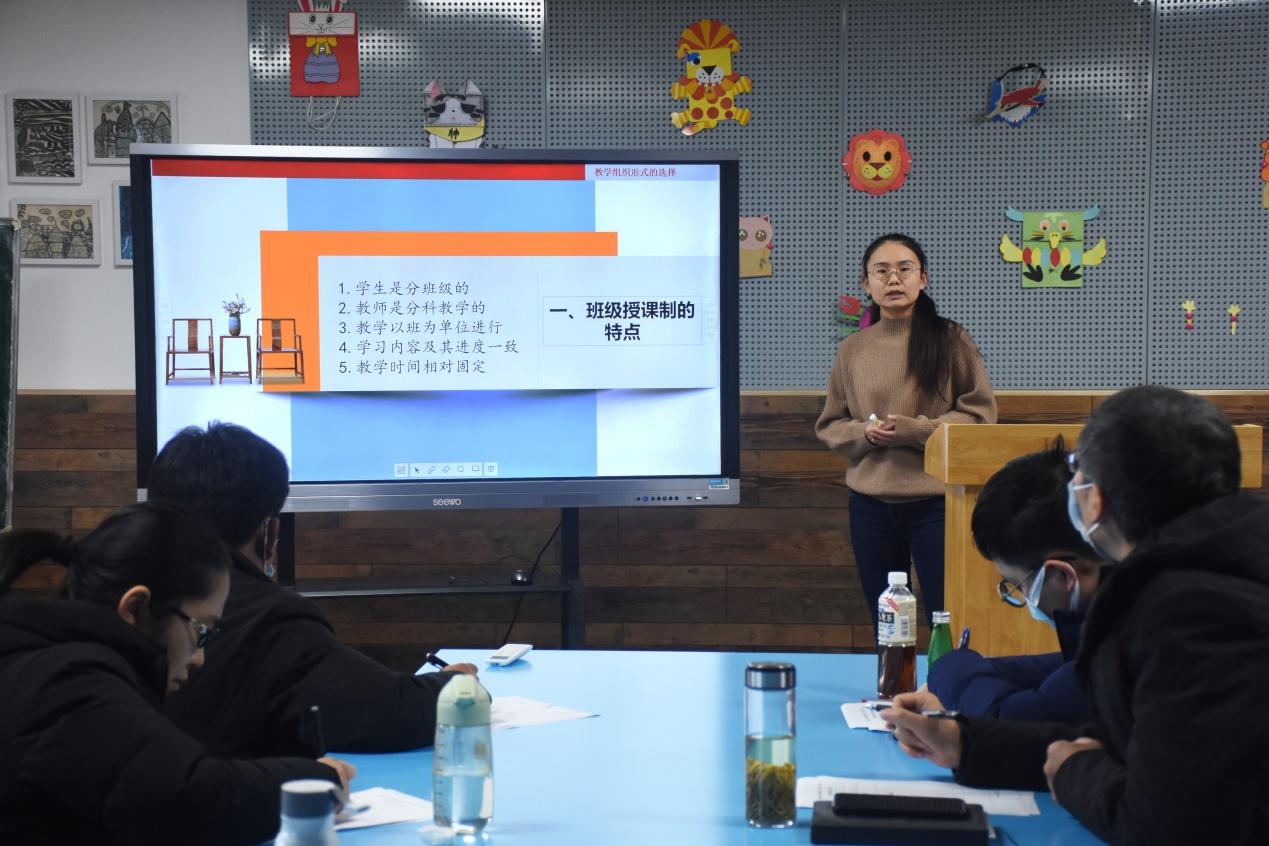 本次考核活动分为两个环节:抽签上课和评课交流。在抽签上课环节,程天一、周燕明、刘青、董莹四位新老师分别按照抽签的顺序进行模拟授课。随后是评课交流环节,结对帮扶教师逐一对四位新教师教学过程中的优点、存在的教学问题以及解决方法进行点评。他们指出,教学时应提高课堂的丰富程度,以及对课堂的投入程度。