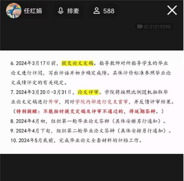 本次会议分为两个阶段。第一个阶段,任红娟首先强调了毕业论文工作的重要性,需要师生在思想上予以高度重视。接着对毕业论文工作流程和基本要求进行了解读,并着重指出,毕业论文环环相扣,应准确把握每个环节的时间节点。