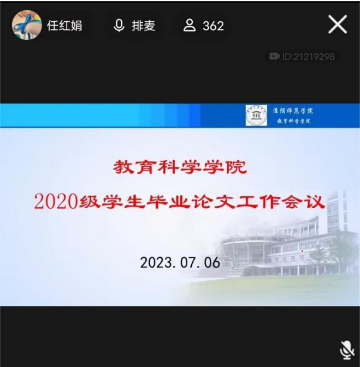 教科网7月8日电(记者 周逸凡 黄澜)2023年7月6日晚19时,教育科学学院于QQ群课堂召开2020级学生毕业论文工作会议,旨在让学生明确毕业论文的重要性以及提高学生论文质量等。本次大会由教科院副院长任红娟主持,院长曹如军、毕业论文校内外指导老师以及2020级全体学生参会。