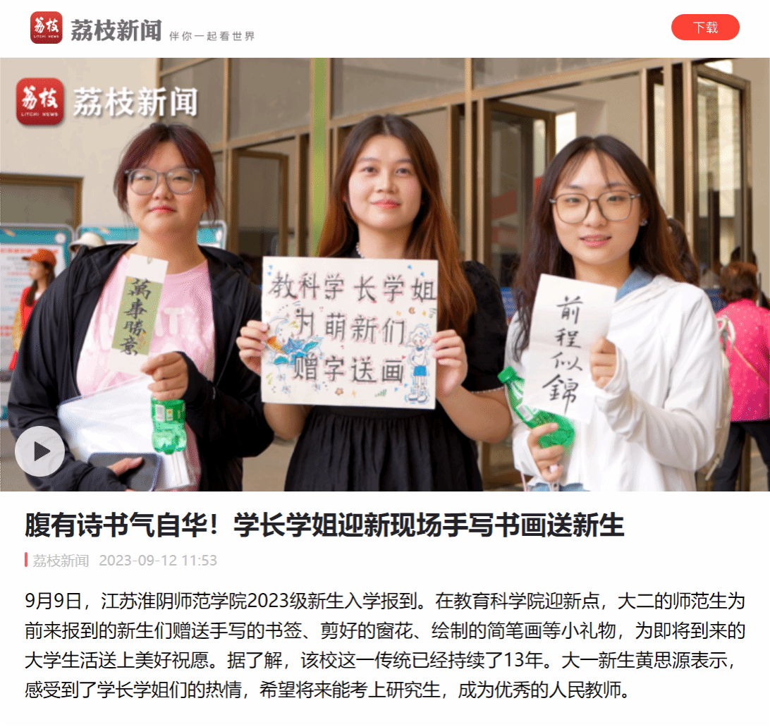 【荔枝新闻】腹有诗书气自华!学长学姐迎新现场手写书画送新生