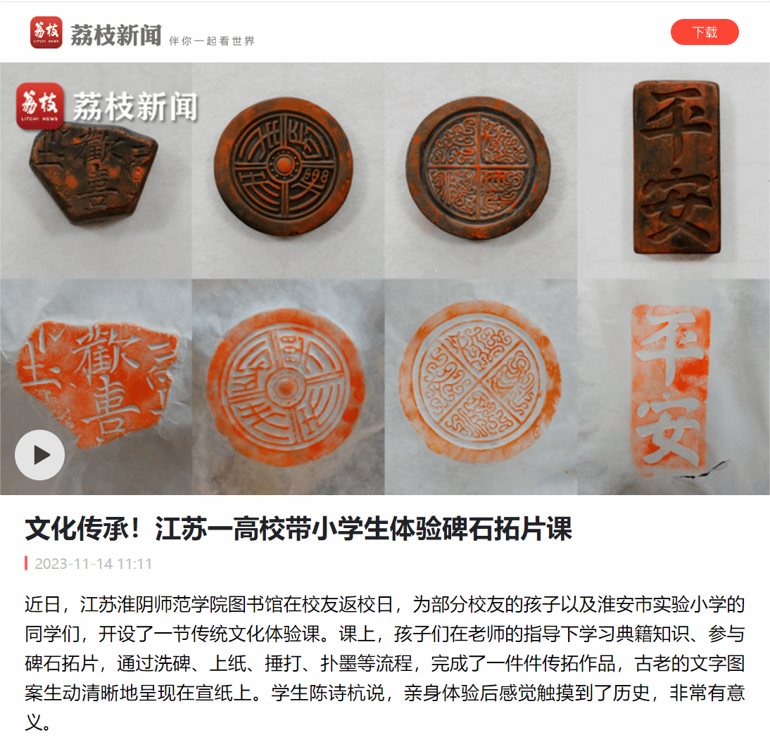 【荔枝新闻】文化传承!江苏一高校带小学生体验碑石拓片课