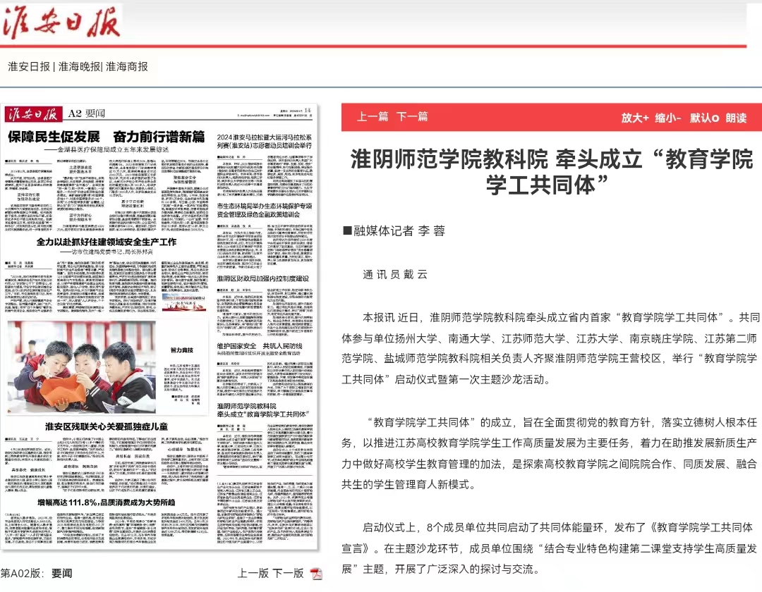 【淮安日报】royal皇家88平台教科院 牵头成立“教育学院学工共同体”