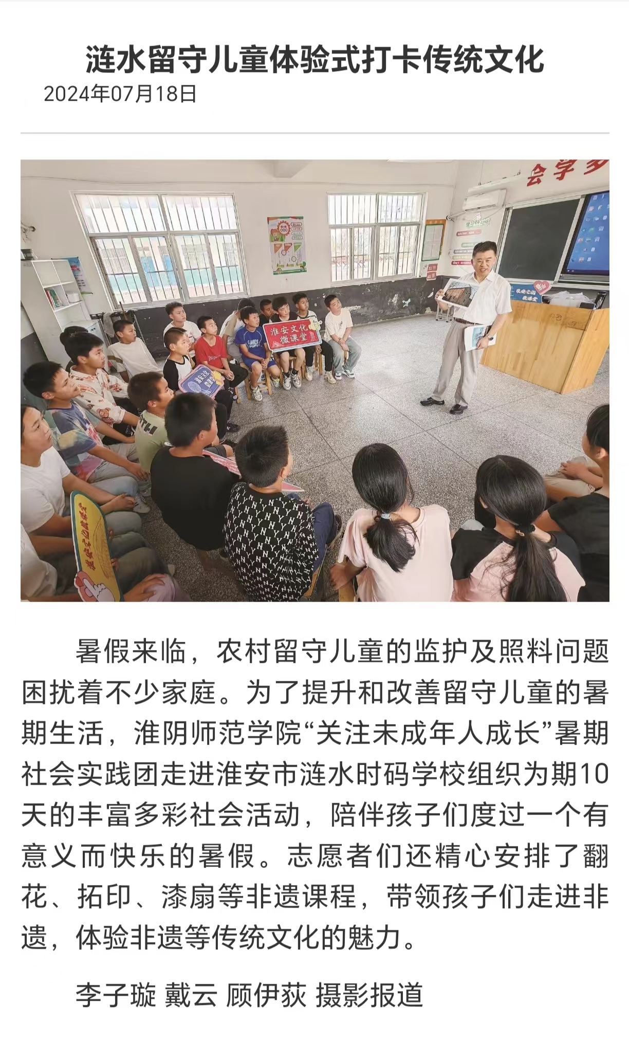【现代快报】涟水留守儿童体验式打卡传统文化