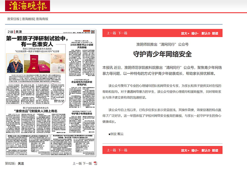 刊播媒体:淮海晚报 刊播时间:10月30日 通讯员:张欣 戴云
