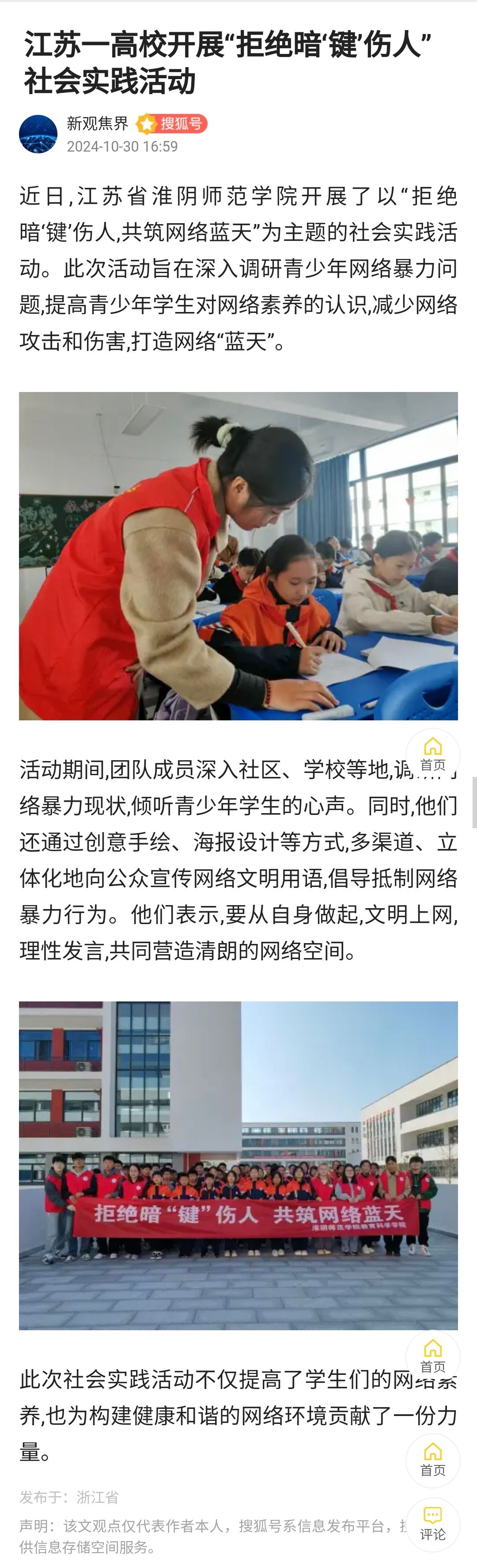 【搜狐网】江苏一高校开展“拒绝暗‘键’伤人”社会实践活动