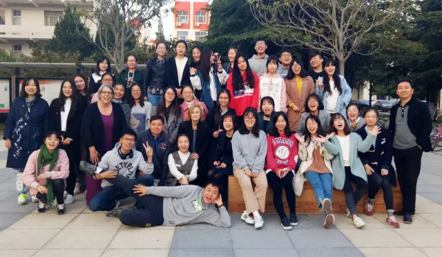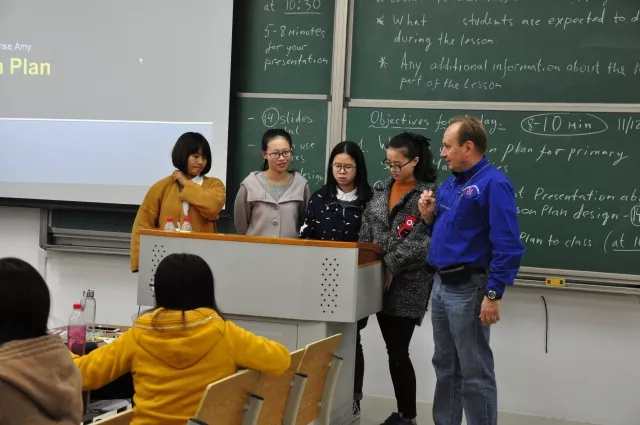 (第一批外国老师来淮授课)